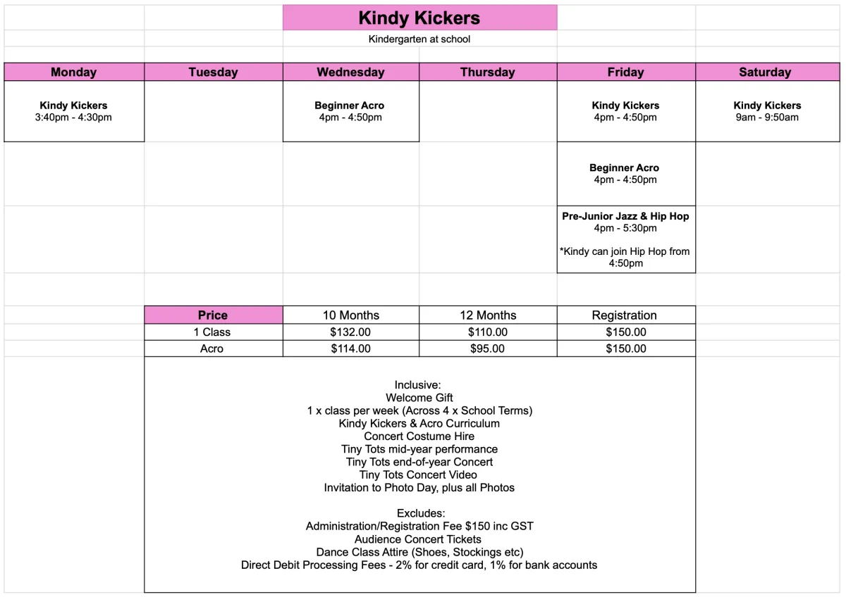 Diverse Class Program: Our weekly classes are a vibrant mix of dance styles, tailored to engage and stimulate the minds of Kindergarten-aged children.